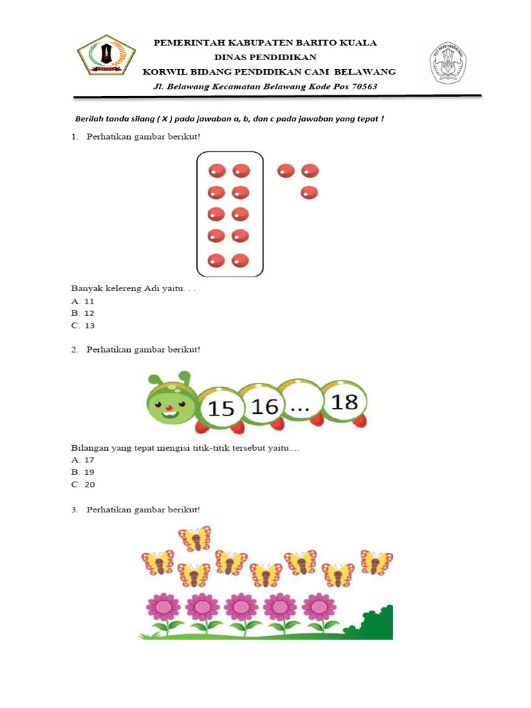 Pembahasan: Menguji kemampuan menghitung dan menjumlahkan objek konkret.