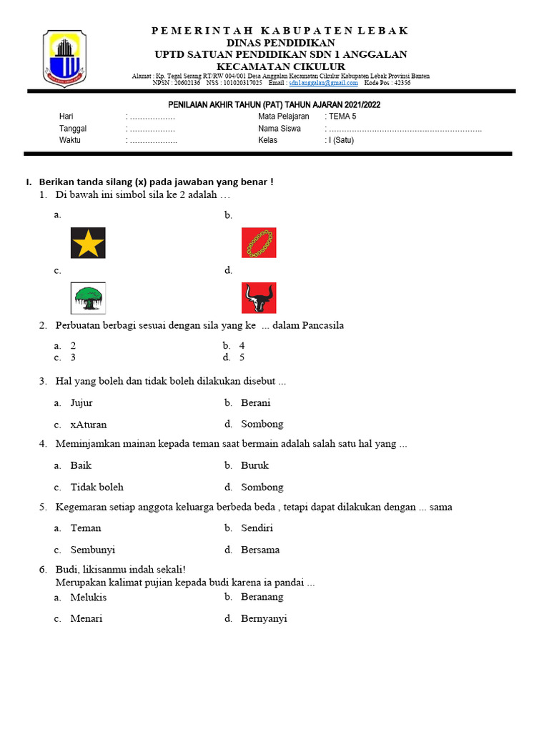 Memahami materi Tema 5 secara mendalam sangat penting karena berkaitan erat dengan pengalaman personal anak. Hal ini tidak hanya mengasah kemampuan kognitif, tetapi juga kecerdasan emosional dan sosial mereka. Agar guru dan orang tua dapat mempersiapkan siswa secara optimal, artikel ini akan menyajikan kumpulan contoh soal PAT Kelas 1 MI Tema 5, lengkap dengan pembahasan singkat, yang mencakup berbagai aspek pembelajaran dalam tema ini. Diharapkan, kumpulan soal ini dapat menjadi referensi berharga dalam mengasah kesiapan siswa menghadapi PAT.