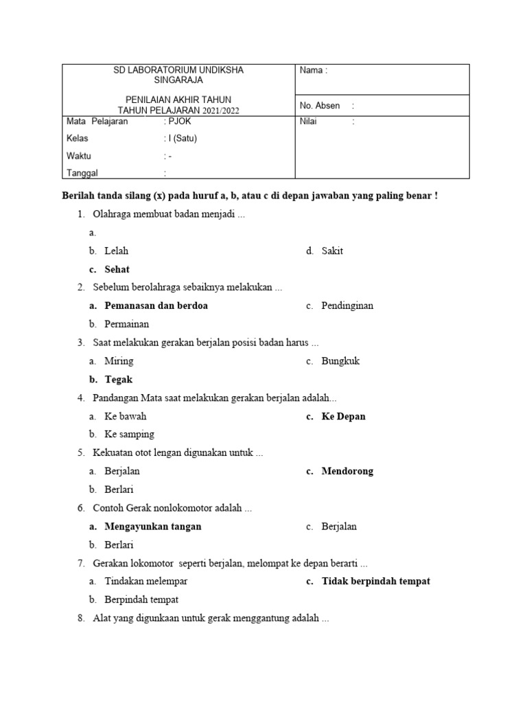 1. Pilihan Ganda (Gerakan Dasar):